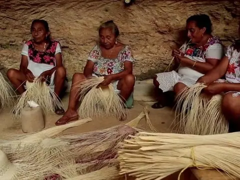 Tradición, Bécal Municipio de Calkini Campeche. Becal es considerada la cuna del sombrero maya. Esta comunidad las mujeres tejen a mano dentro de cuevas con la fibra de jipijapa, sombreros, bolsos carteras, etc. El principal exportador